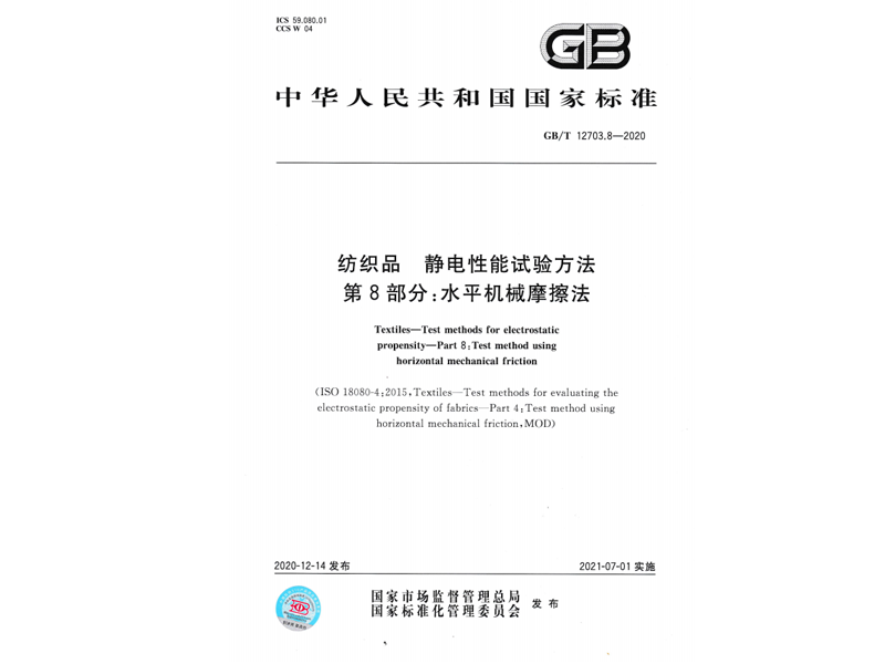 參與起草《紡織品 靜電性能試驗方法第8部分:水平機械摩擦法》(GB/T 12703.8-2020),該標準由國家市場監(jiān)督管理總局、國家標準化管理委員會于 2020-12-14 發(fā)布