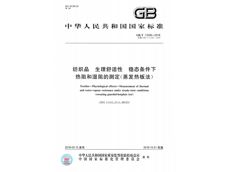 參與起草《紡織品生理舒適性穩(wěn)態(tài)條件下熱阻和濕阻的測定》(GB/T 11048-2018),該標準由中華人民共和國國家質量監(jiān)督檢驗檢疫總局、中國國家標準化管理委員會于 2018-03-15 發(fā)布