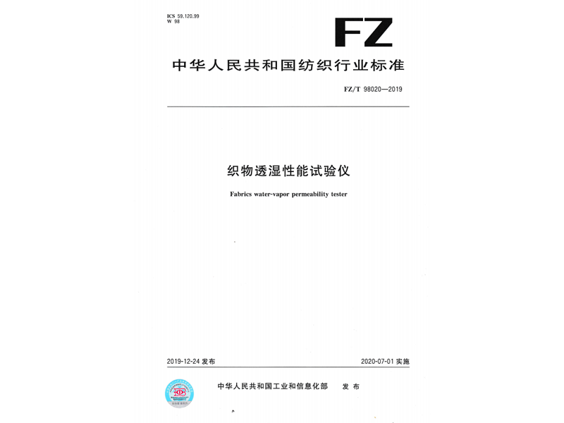 參與起草《織物透濕性能試驗儀》(FZ/T 98020-2019),該標準由中華人民共和國工業(yè)和信息化部于 2019-12-24 發(fā)布