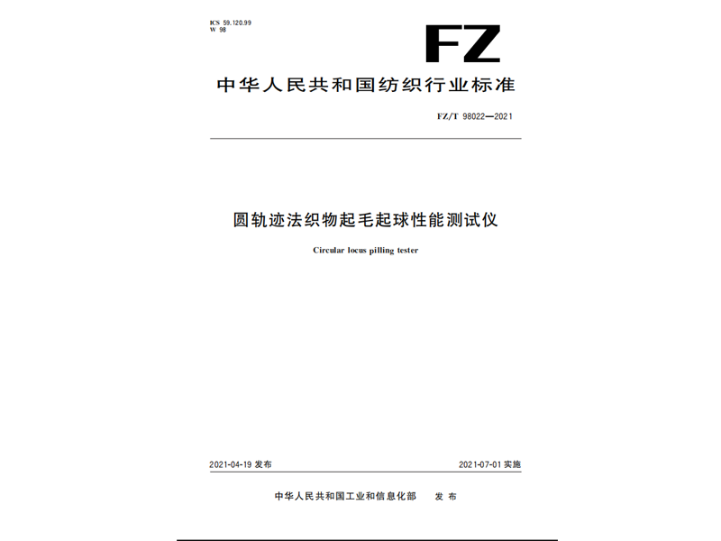 參與起草《滾箱式織物起毛起球性能測試儀》(FZ/T 98019-2018),該標準由中華人民共和國工業(yè)和信息化部于 2018-10-22 發(fā)布