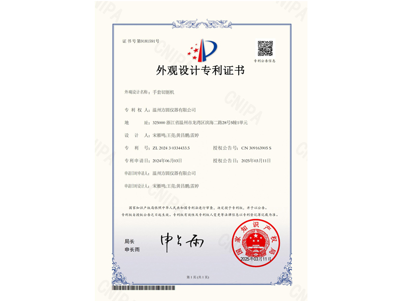 中國外觀設計專利:手套切割機(ZL2024 3 0334433.5)